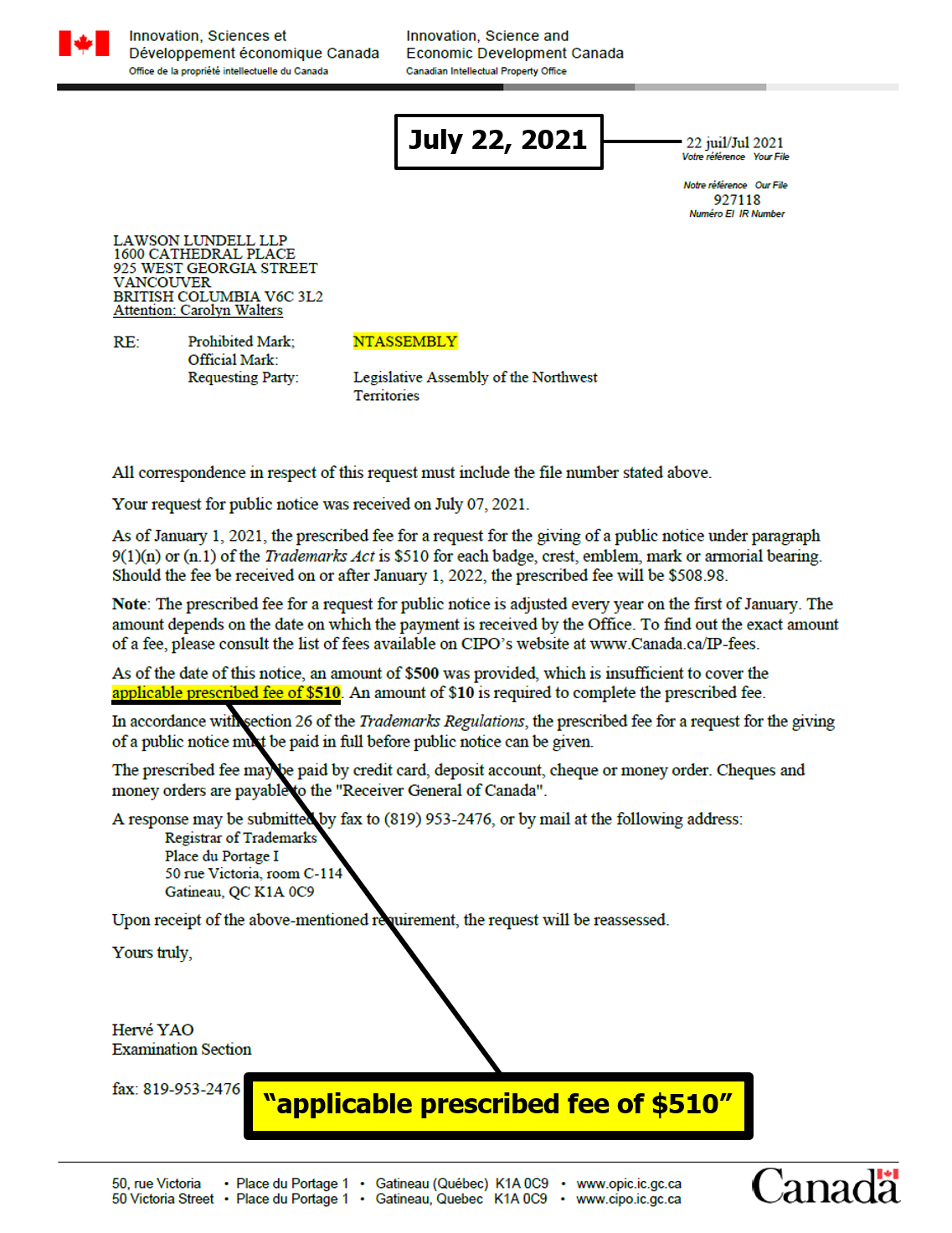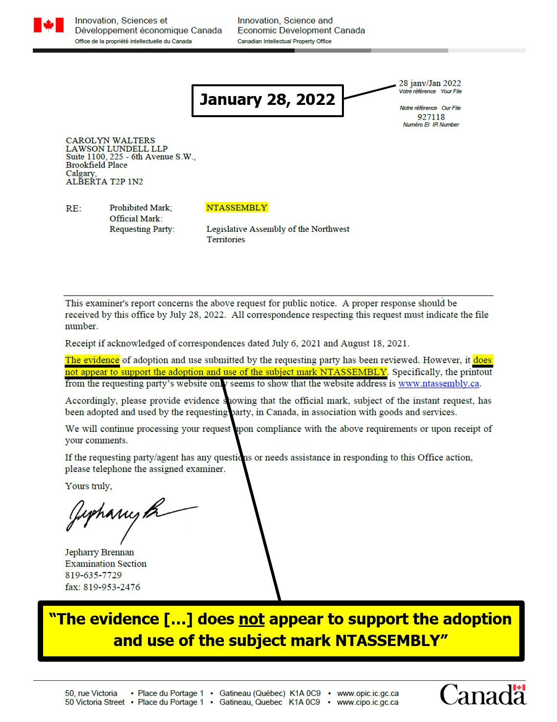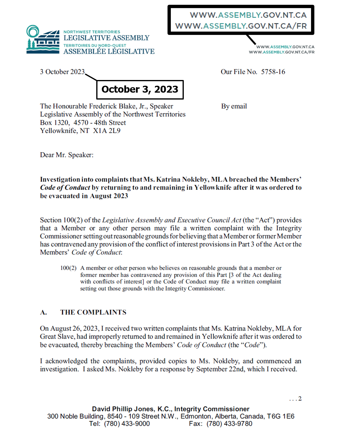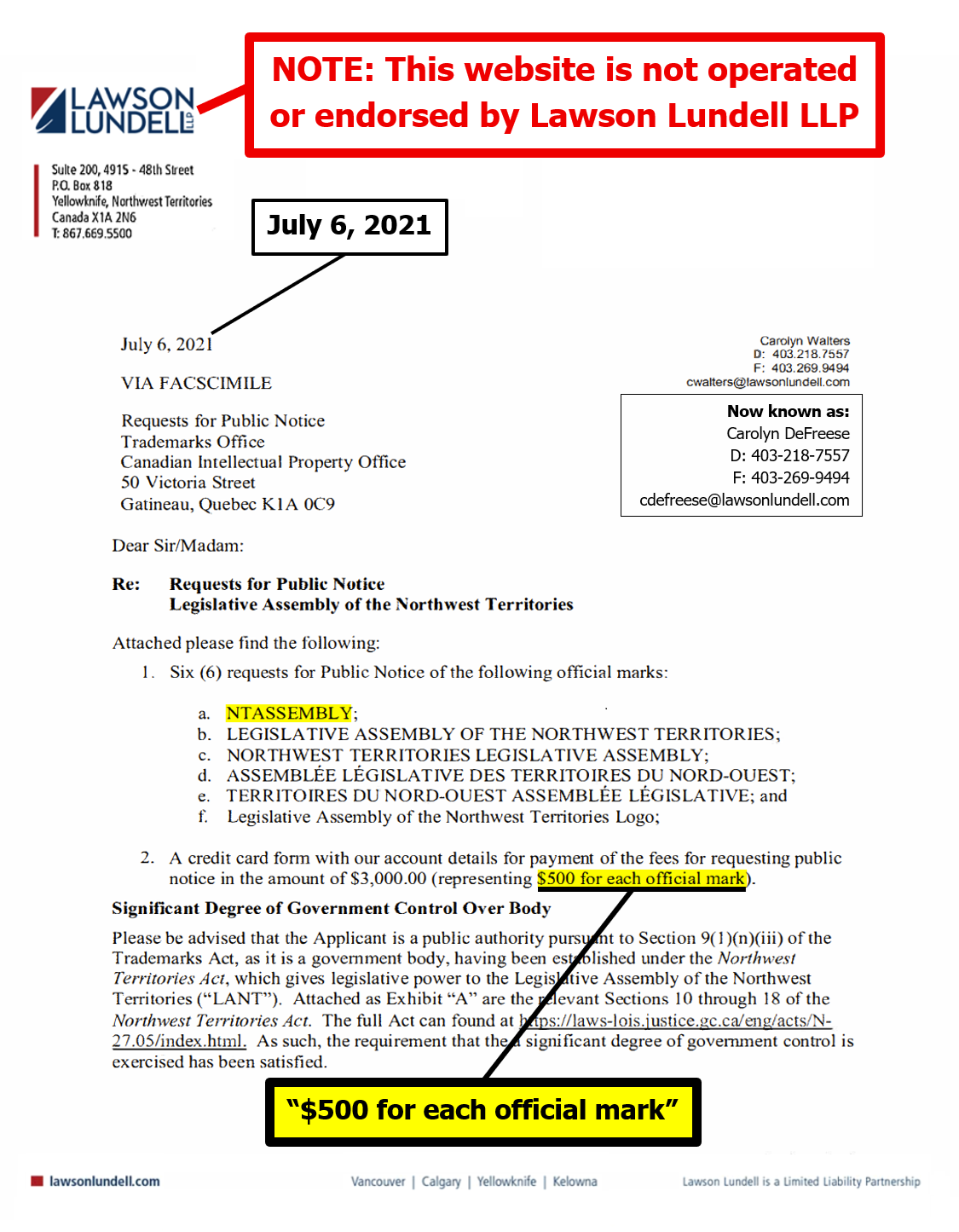 "the NTLA owns the domain name www.ntassembly.ca" is FALSE: