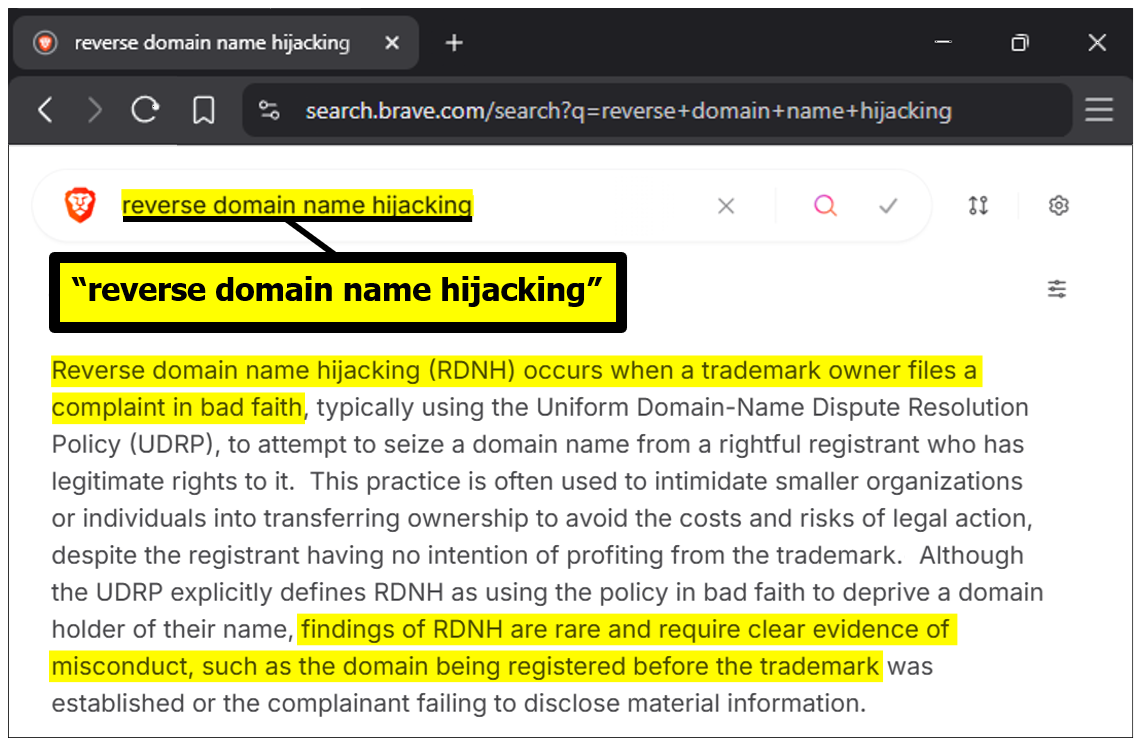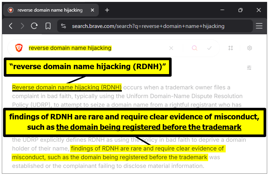 Reverse Domain Name Hijacking (RDNH):